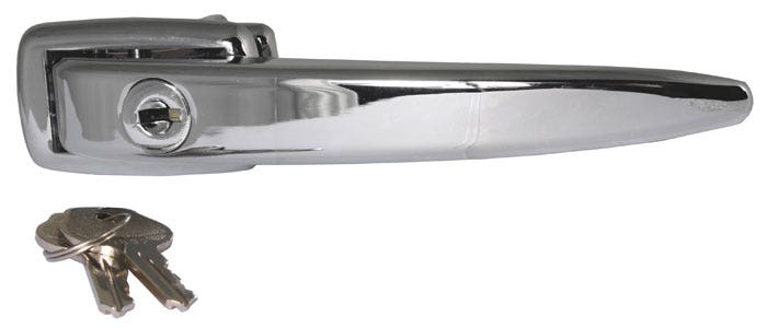 Exterior door handle. This is a locking handle and comes supplied with 2 SG profile keys. It is finished in chrome and will fit both the left and right side.Supplied without the door handle to body seals, Order 111-837-211 for the seals