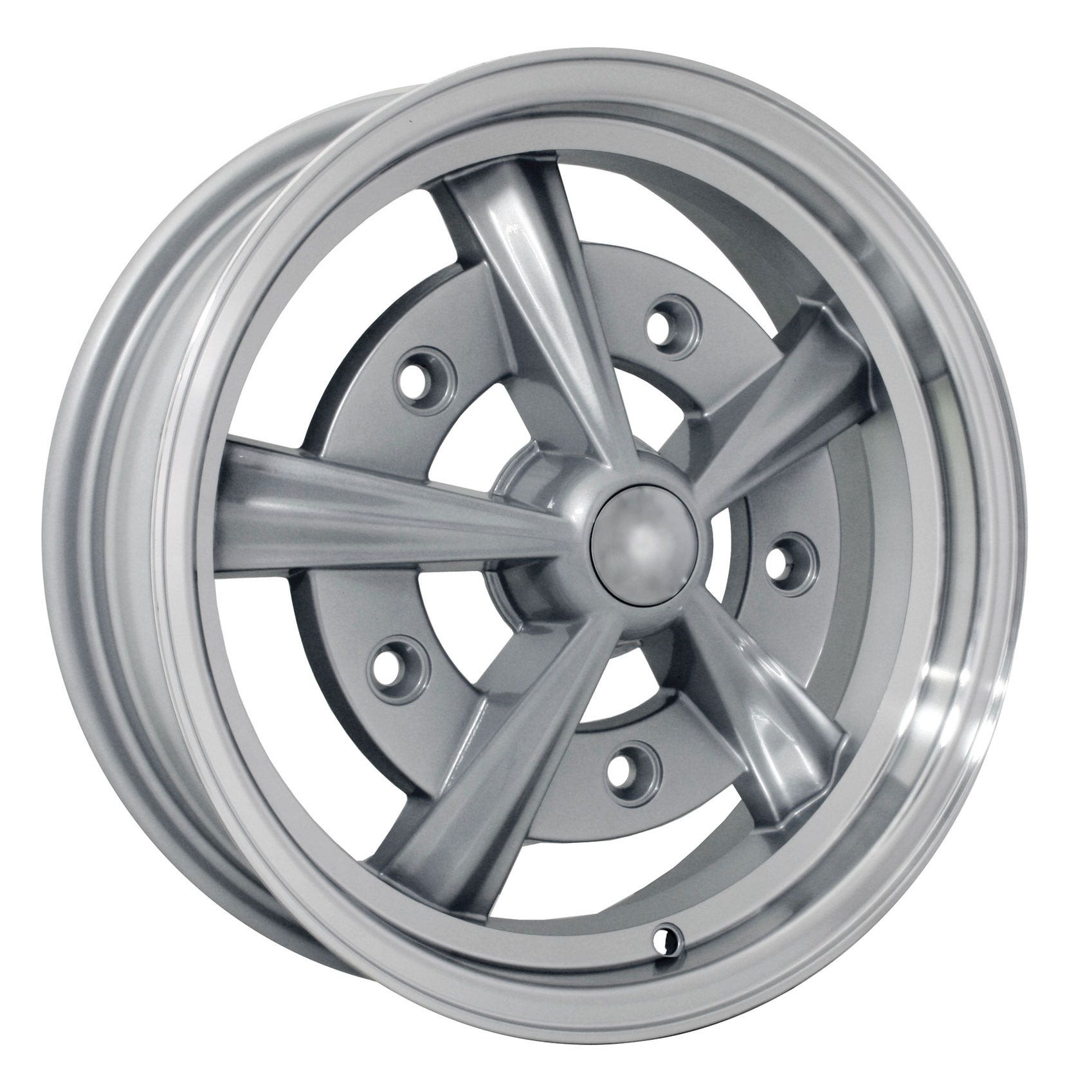 SSP Raider alloy wheel finished in painted silver and a polished lip.Having been on the scene since 1965 these wheels really are a classic, originally produced with a steel rim and an alloy centre. SSP offers the essence of this wheel with the Raider for 5/205 PCD Beetle models.Stud pattern – 5 x 205Wheel width – 5jWheel diameter – 15″Offset – ET20Load rating – 695kgBeetle / Ghia fitment requires 12mm wheel bolts AC601SB05.T2 Split / Bay fitment requires 14mm wheel bolts AC601SB32.** Wheel nuts or bolts are supplied free of charge when you purchase a set of 4 wheels – when ordering please add a comment with your vehicle model, year and whether nuts or bolts are required.NOTE: When fitting to a pre 1970 T2 or a pre ’65 Beetle/Ghia a spacer and longer bolts will need to be used to allow clearance around the snout/centre of the drum, this may cause clearance issues on the wheel arches.These wheels are not TÜV certified.*All SSP wheels have a 2 year structural warranty, painted wheels carry a 2 year warranty on finish, chrome wheels have a 1 year warranty on finish, and polished wheels will require regular polishing to maintain the finish.