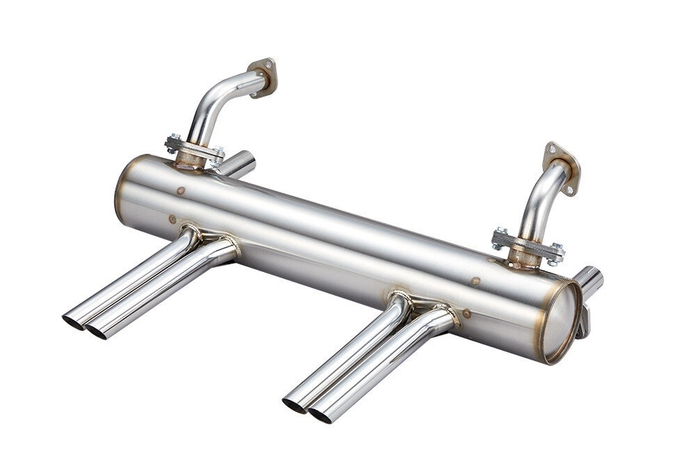 110mm Abarth Style MufflerDesigned for engines up to 50HP for optimal performance±4mm adjustable flanges for stock and stroker enginesCrafted from 100% #304 stainless steel for durabilityUpgrade your classic VW with the Vintage Speed Abarth Exhaust designed for aprons with cut outs. This high-performance exhaust is perfect for engines up to 50HP, delivering both style and sound that enhances your driving experience. The adjustable flanges provide flexibility, accommodating both stock and stroker engines with ease.Made entirely from #304 stainless steel, this exhaust system boasts exceptional durability and resistance to corrosion, ensuring it will stand the test of time. Whether you’re looking to improve performance or simply want a sleek, vintage aesthetic, the Vintage Speed Abarth Exhaust is an excellent choice for your restoration or upgrade project. Includes the heat riser option, which can be easily blanked off if need be.