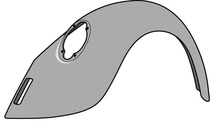 Rear right wing. This is a European spec wing and features the long wide slot for the bumper and a hole for elephant lamps. It fits all 1974 onwards 1200 and 1300 models and 1303 from 1975-1979